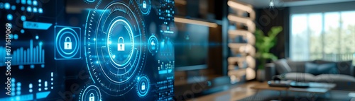 Obraz premium Smart home, holographic security controls, modern tech, safe living environment
