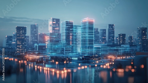 Fototapeta premium Smart Hospital Powered by Resilient Smart Grid in a Futuristic City Skyline,...