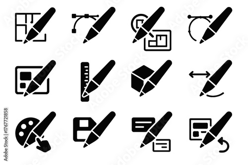 © elena, Obraz premium Smart icon gesture dragging vector blueprint design into editing tablet pen