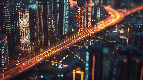 © Teeraphon, Obraz premium Smart Innovation city with connection cyber security network reciprocity over the night cityscape future wireless digital city and social media networking systems that connects people in the city