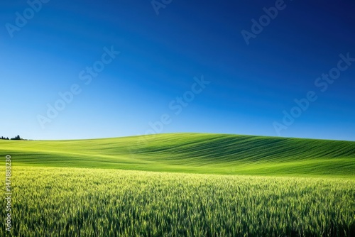 © Igor, Fototapeta premium Smart irrigation system waters green field under blue sky