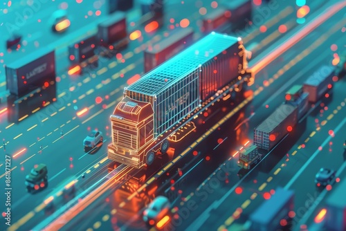 Fototapeta premium Smart logistics network for efficient import export with ai driven truck...