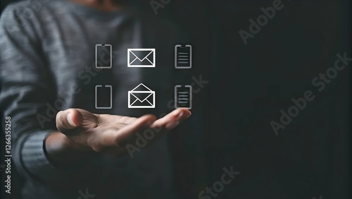 © Jutha, Fototapeta premium Smart Notification Icons Floating Around Hand - Photo Stock Concept