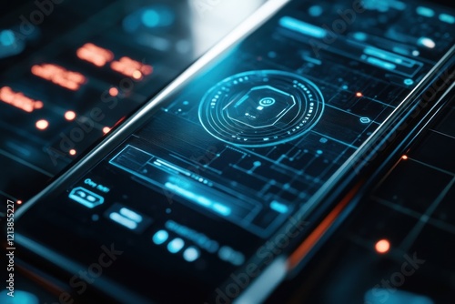 Obraz premium Smart phone futuristic interface, digital dashboard, security app, tech...