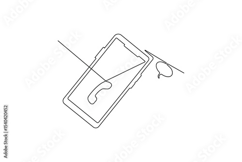 © Md. Sohel, Fototapeta premium Smart phone touch screen gadget continuous one line art outline drawing minimalist single line unique mobile phone vector illustration.