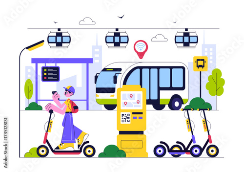 Fototapeta premium Smart Public Transport System Illustration Featuring Mobile Tracking...