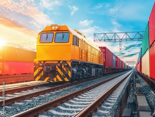 Obraz premium Smart Rail Cargo Network with AI Powered Logistics for Efficient...