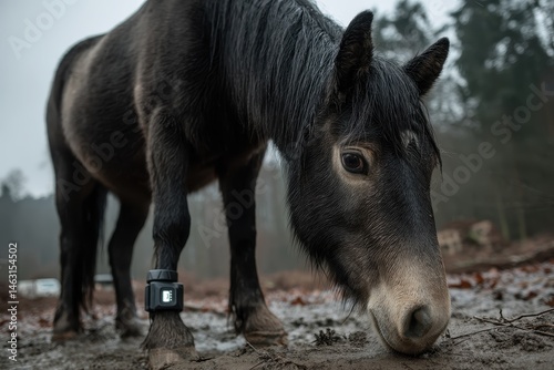 Fototapeta premium Smart Technology for Planting Rows in Wide Farmland with Horses in the Background