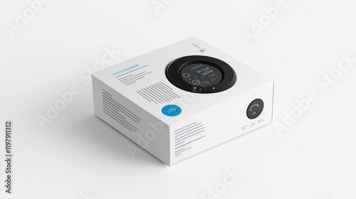 Fototapeta premium Smart Thermostat Product Packaging Design: Modern Minimalist White Box with...