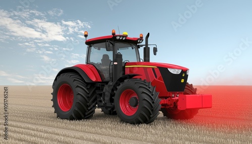 Obraz premium Smart tractor with GPS technology, navigating fields autonomously for planting and harvesting operations