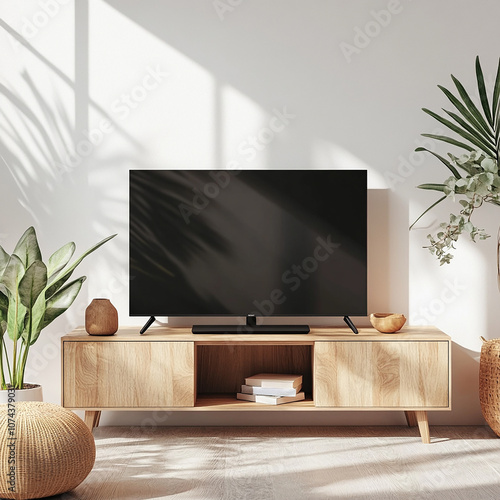 © MrGraphics1990, Obraz premium Smart TV mockup ,black display, with white background