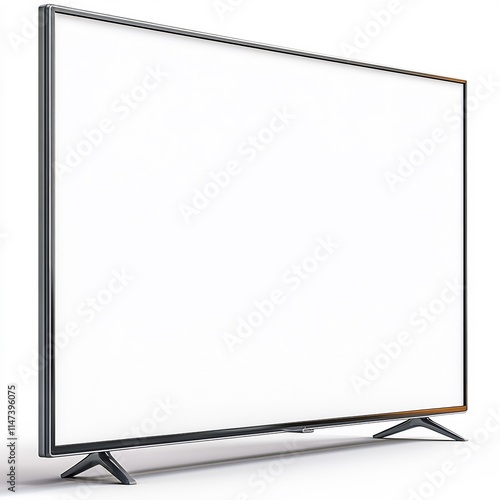 © Discover stocks, Naklejka premium Smart TV with a blank white screen on a modern stand placed on a clean surface isolated on a white background ar 169