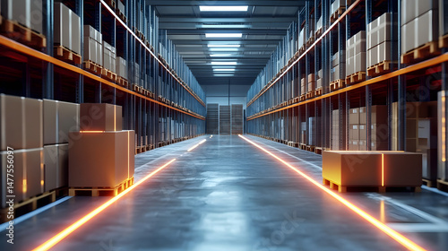 © Daniel, Obraz premium Smart warehouse management system using augmented reality technology to identify package picking and delivery . Future concept of supply chain and logistic busines