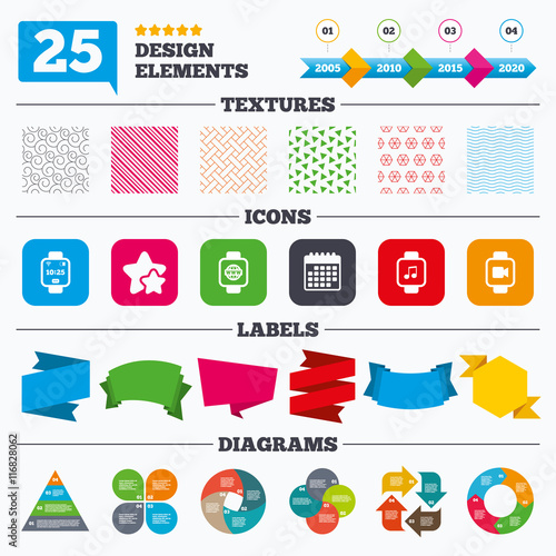 Fototapeta premium Smart watch icons. Wrist digital time clock.