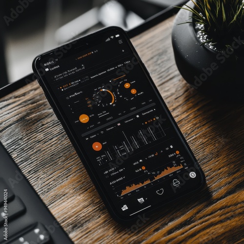 © Narongsag, Fototapeta premium Smartphone Display with Financial Data and Charts