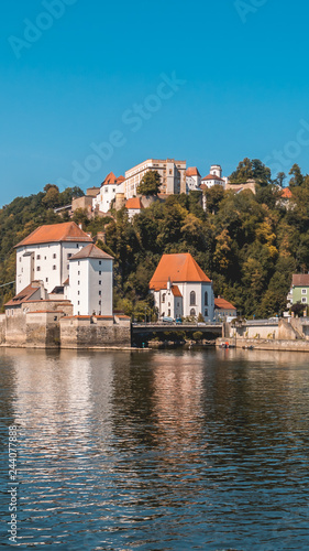 © Martin Erdniss, Obraz premium Smartphone HD wallpaper of beautiful view at Passau - Danube - Bavaria - Germany