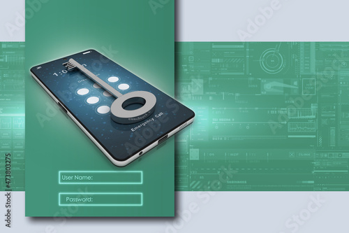 © meenkulathiamma, Obraz premium Smartphone key security concept. 3D illustration