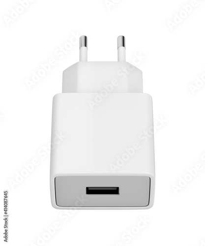 Fototapeta premium Smartphone power adapter with USB port isolated on white background