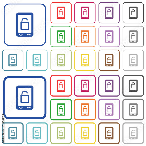 Fototapeta premium Smartphone unlock outlined flat color icons