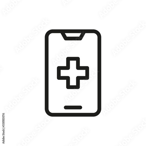 © Vector World, Fototapeta premium Smartphone with First aid kit in line icon