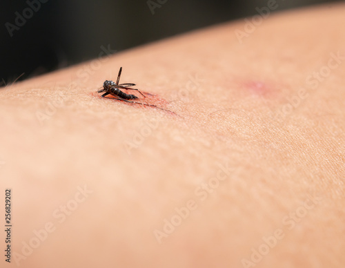 © Freer, Obraz premium smashed mosquito with blood on mens arm