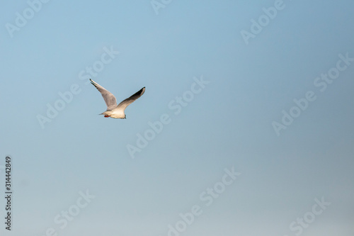 © David, Obraz premium Śmiejąca się mewa (Chroicocephalus ridibundus lecący na plaży