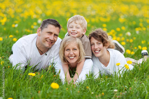 © contrastwerkstatt, Fototapeta premium Śmiejąca się rodzina leży na trawie