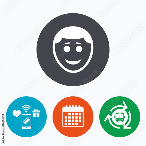 Fototapeta premium Smile face icon. Smiley with hairstyle symbol.