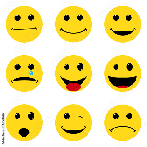 Fototapeta premium smile faces pack. Different emotions. Simple flat design