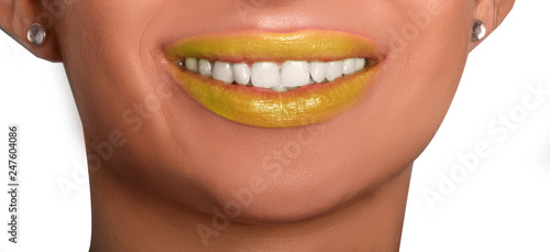 © Bas, Obraz premium smile of young woman with white teeth and yellow lipstick