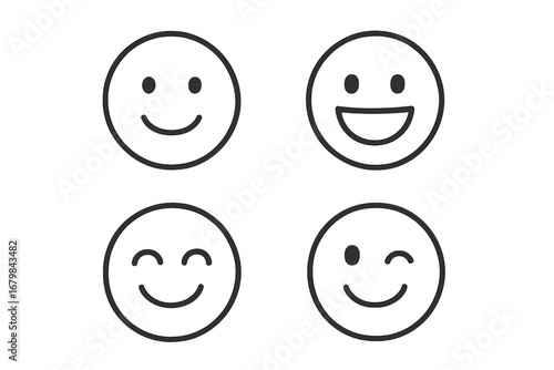 © Susann, Fototapeta premium Smile thin line icon collection, editable stroke vector set for websites, apps, books, cards, cartoons, transparent background, ordered design, cheerful expression symbols