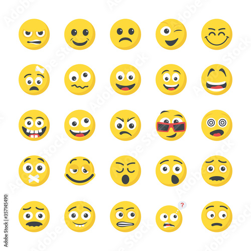 © Vectors Market, Fototapeta premium Smileys Flat Icons Collection