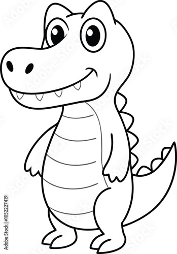 Naklejka premium Smiling Alligator Coloring Page Cartoon Illustration