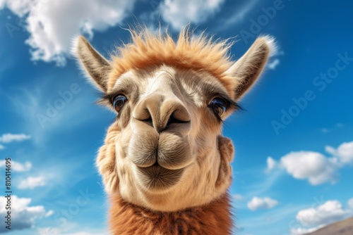 © Balaraw, Obraz premium Smiling Alpaca Against Blue Sky