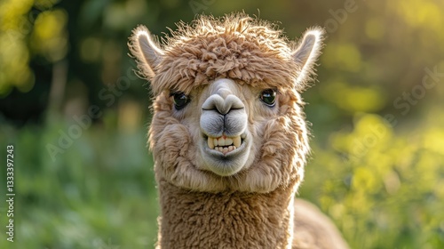 © art, Obraz premium Smiling Alpaca in a Sunny Field