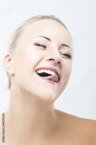 © danmorgan12, Obraz premium Smiling and Happy Caucasian Woman Beauty Face Closeup Portrait