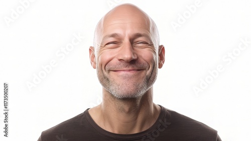 © WS Studio 1985, Obraz premium Smiling Bald Man Isolated on White Background with Friendly Expression