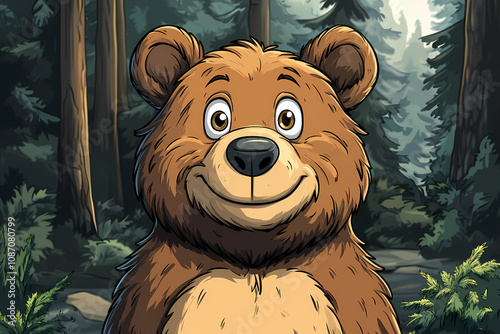 © Akharadat, Obraz premium smiling bear, 2d vector art style,cartoon stylized, vibrant colors,