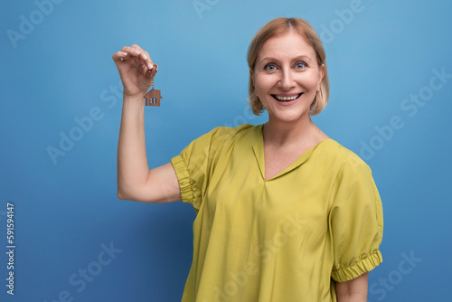 Fototapeta premium smiling blond mature woman holding the keys of her new property