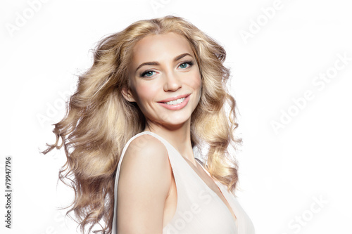 © deniskomarov, Fototapeta premium Smiling blond woman studio portrait