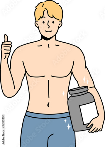 Fototapeta premium Smiling bodybuilder with protein in hands