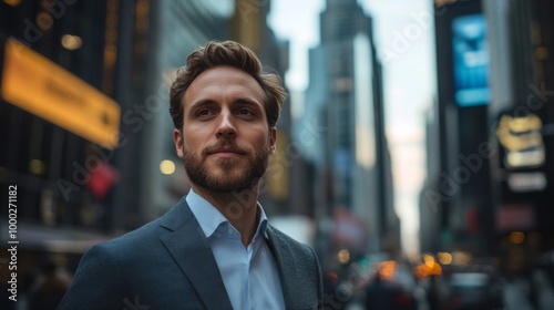 © Sandu, Fototapeta premium Smiling Businessman in Urban Setting