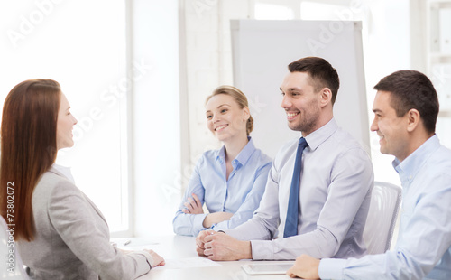 Obraz premium smiling businesswoman at interview in office