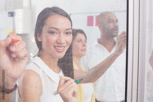 Fototapeta premium Smiling businesswoman with colleagues in meeting