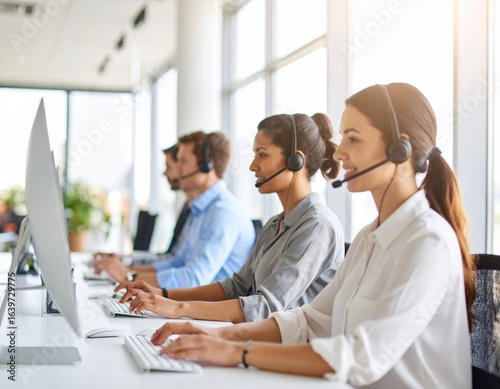 © Mango, Fototapeta premium Smiling Call Center Agents Working at Computers