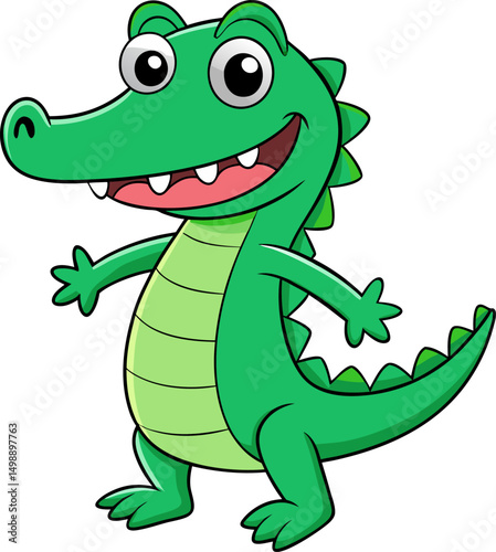 © kdpprosolutions2015, Obraz premium Smiling cartoon alligator standing upright with a fun and happy pose perfect for educational graphics