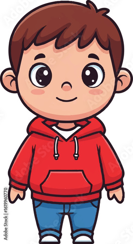 Fototapeta premium Smiling Cartoon Boy in Red Hoodie – Flat Vector Art