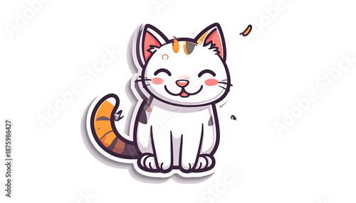 © VINA, Obraz premium Smiling Cartoon Cat with Tri-Color Markings on Transparent Background
