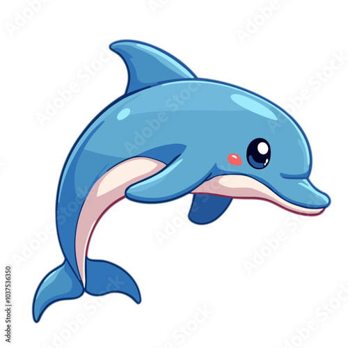 Obraz premium Smiling cartoon dolphin posing cheerfully on white background