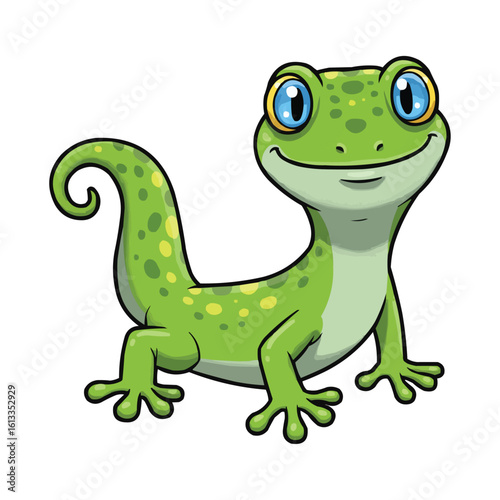 © xxoxshawon, Fototapeta premium Smiling Cartoon Gecko with Yellow Spots
